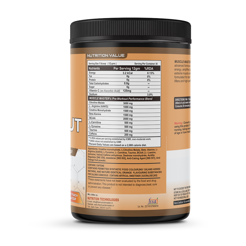 MUSCLE MASTER’S PRE WORKOUT is an advanced formula designed for intense energy, amplified pumps, explosive power, extreme muscle endurance. It has been formulated for star bodybuilders, heavy power lifters and high performance athletes.